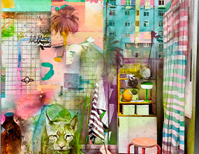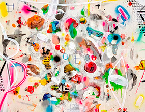 Óleo, espray y lápices de colores sobre lienzo