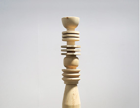 Ensamble de madera reciclada torneada y pieza moldeada en resina jeamonite