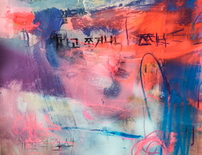 Óleo, espray y lápices de colores sobre lienzo