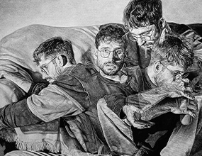 Grafito y carboncillo sobre papel fijado a tabla