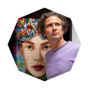 Maxim Wakultschik (Minsk, Belarus, 1973) is a multidisciplinary artist who lives and works in Düsseldorf, Germany. His work is defined by its exploration of the boundaries between painting, object and sculpture, merging traditional techniques with unconventional materials such as wooden sticks. Through complexity and illusion, he constructs apparent realities that challenge viewers to look beyond, creating three-dimensional portraits that transform perception.