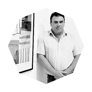 He studied Engineering and Philosophy, which he left in order to dedicate himself to the arts. He began printmaking as a self-taught artist, later joining the workshop of master printmaker Theo Dietrich in Madrid and the National School of Graphic Arts. In 1982 he founded his own printmaking studio, and in 1986 the art magazine CYAN. In 1989 he created the graphic art publishing house M más M Ediciones, and in 1990 the printmaking and poetry magazine Estación Central. He was awarded a grant at the Spanish Academy of Fine Arts in Rome for the 1996–1997 academic year. He founded the Estación Central Gallery and its namesake publishing house. He has collaborated with workshops in Italy, France, Germany and Portugal, and has taught printmaking in various art centers such as the Andalusian Center for Serial Art, Fundación CIEC, Centro de las Artes de Alcorcón, Spanish Center for Graphic Art, the 1st Almería Biennial, Kulturwerkstatt HAUS 10 in Munich, Casa del Artista in Costa Rica and the Cervantes Institute in Tangier, among others. He currently directs the Spanish Center for Graphic Art and the Ars Eria Association, a nonprofit organization dedicated to cultural development in the “España Vaciada” (Empty Spain).