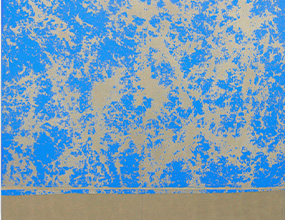 Sol, viento y lluvia sobre acrílico en tela de algodón natural expuesta en tierra arenosa durante tres meses sobre bastidor de madera y ensamblado a un ángulo de metal