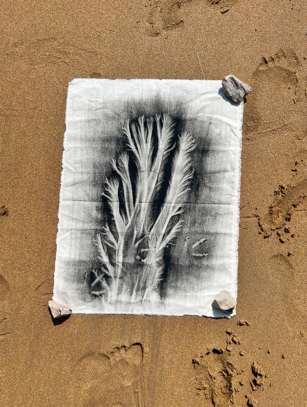 Árbol de la vida. 19-02-25. Gráfica expandida sobre lienzo. 50 x 70 cm. Playa El Puntal. Asturias. 2025.