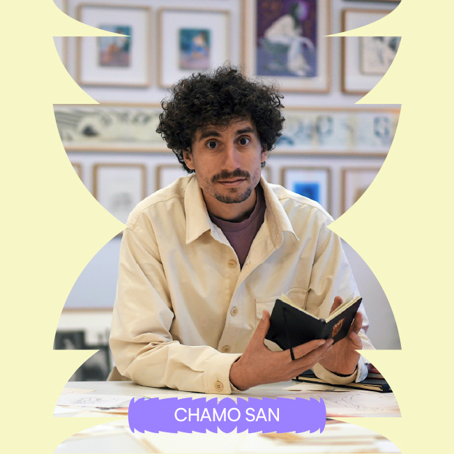 La práctica artística de Chamo San (Barcelona, 1987) se articula en torno a una poética de la atención, donde lo aparentemente insignificante adquiere una intensidad reflexiva singular. Sus obras se construyen desde una observación persistente de la vida cotidiana, entendida no como repertorio narrativo, sino como campo de experiencia compartida. En este marco, el gesto mínimo se convierte en una forma de conocimiento sensible que sitúa al espectador ante escenas reconocibles y, a la vez, extrañadas por su suspensión temporal.