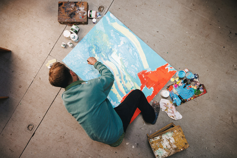 ”En mis cuadros he investigado relaciones entre colores, estructuras compositivas y diferentes tratamientos en la pincelada, con el objetivo de significar la evolución de mi pensamiento sobre las formas que percibo.”
