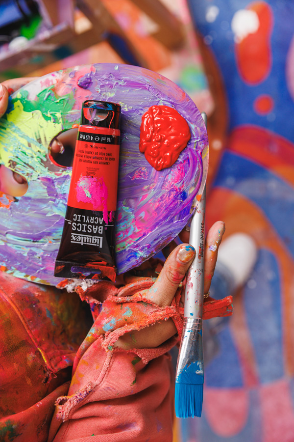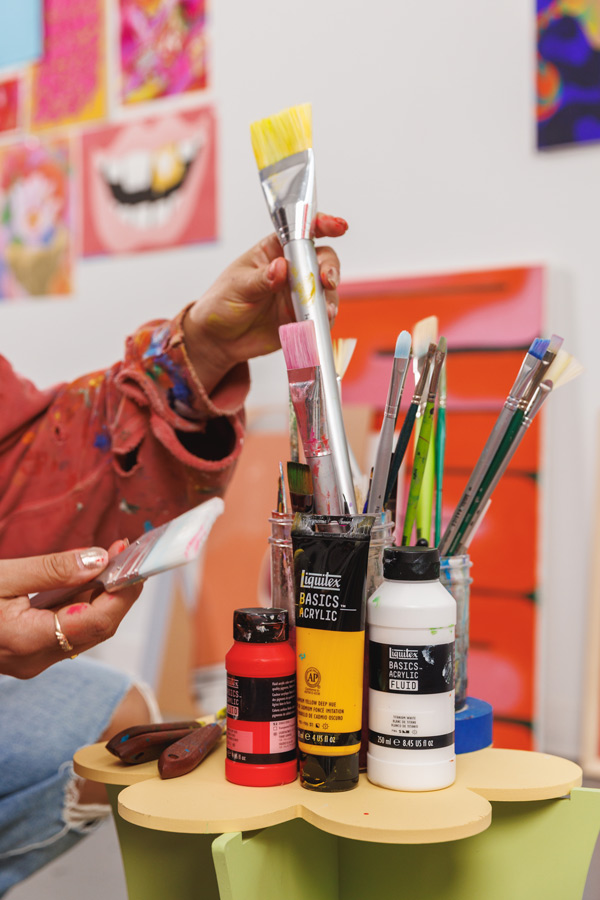 En obras como “Primeras hojas” o “Baile de hojas I”, ambas realizadas en 2019, la gran intensidad cromática y unos contornos muy bien definidos, construyen los motivos figurativos. Los elementos orgánicos de sus hojas, plantas o animales se reafirman de una forma plástica mucho más expresiva y texturizada que las superficies geométricas de colores planos que los complementan.
